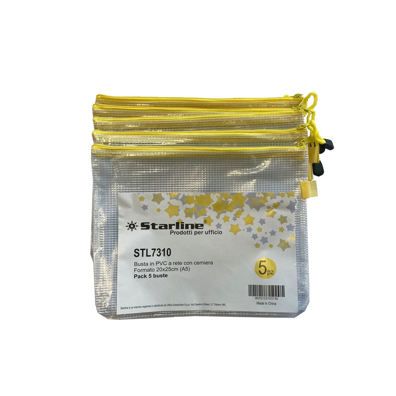 Busta a rete con cerniera gialla - PVC - 20x25 cm - trasparente - Starline