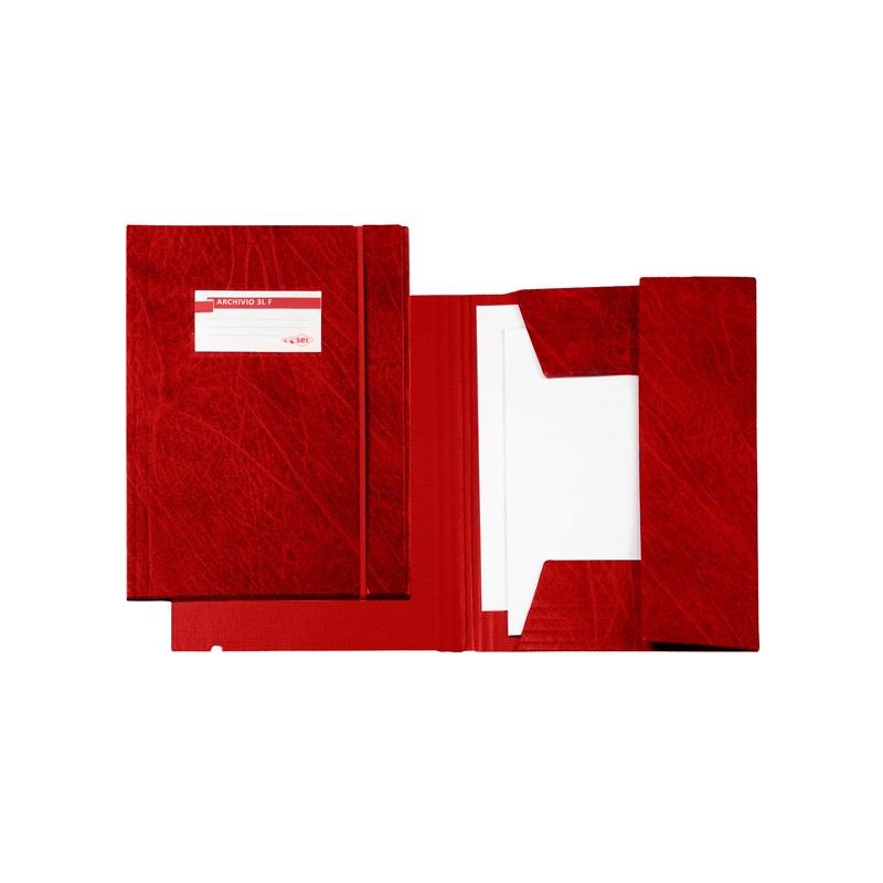 Cartella 3 lembi con elastico F - 25 x 35 cm - dorso 3 cm - Colpan - rosso - Sei Rota