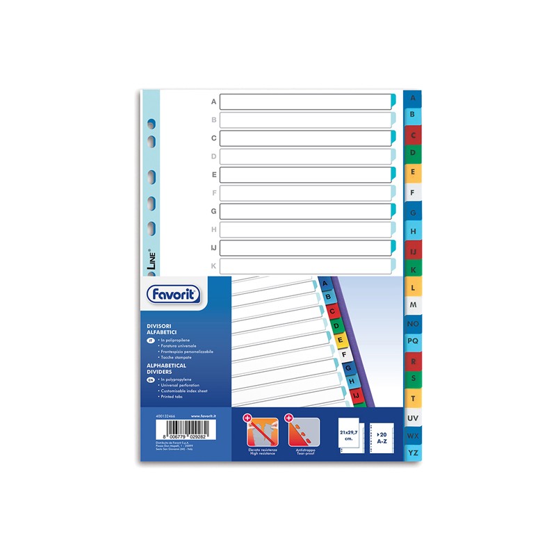 Divisori alfabetici 20 tacche - PP - A4 - colori assortiti - Favorit