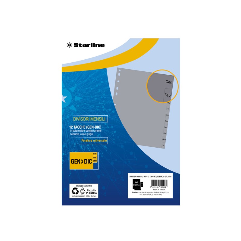 Divisori mensili Gen/Dic 12 tacche - A4 - PP - grigio - Starline