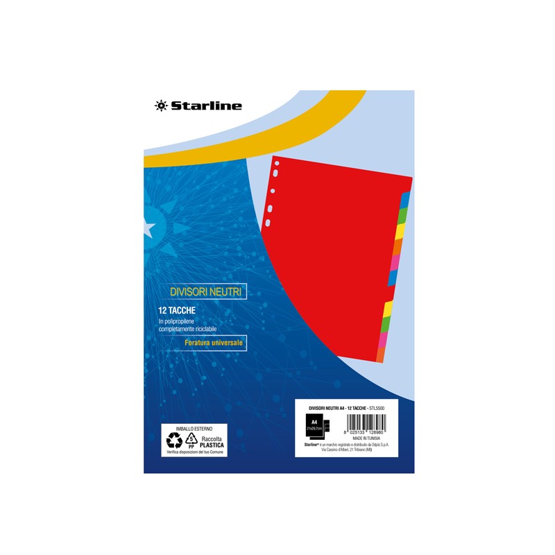 Divisori neutri 12 tacche - A4 - PP - colori assortiti - Starline