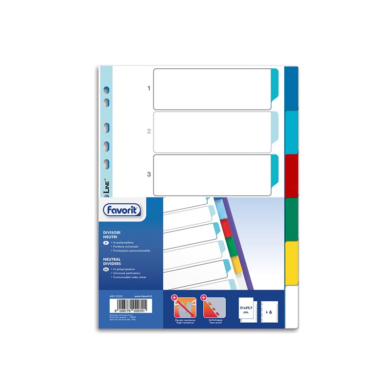 Divisori Neutri a 6 tacche - PP - A4 - colori assortiti - Favorit
