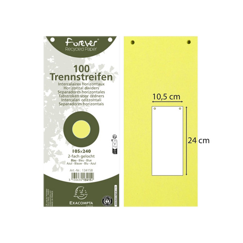 Divisori orizzontali - cartoncino riciclato - 10,5 x 24 cm - giallo - Exacompta - conf. 100 pezzi