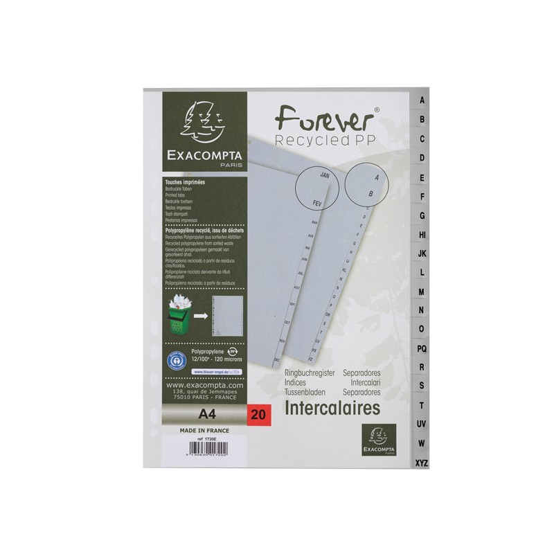 Intercalare alfabetico - PPL riciclato - A4 - A-Z - grigio - Exacompta