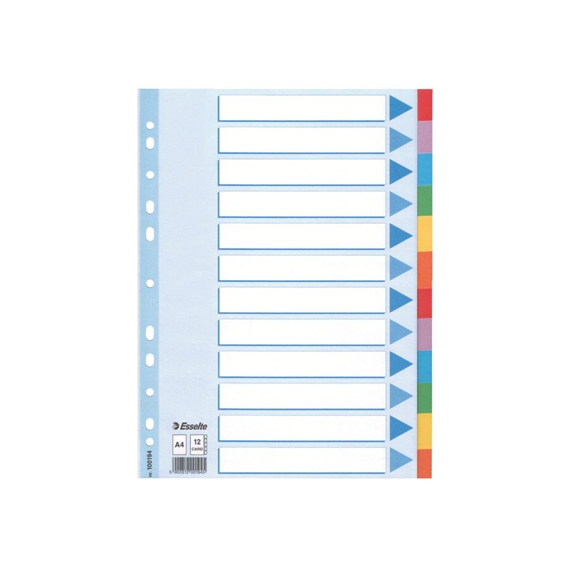 Intercalare cartoncino -12 tasti colorati - A4 - Esselte