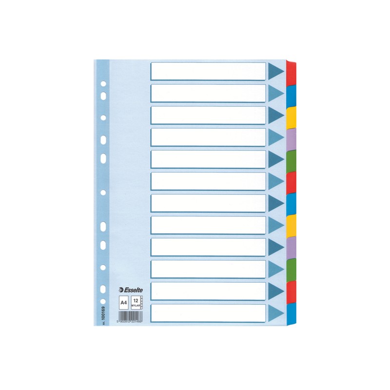 Intercalare Mylar -12 tasti colorati - A4 - Esselte