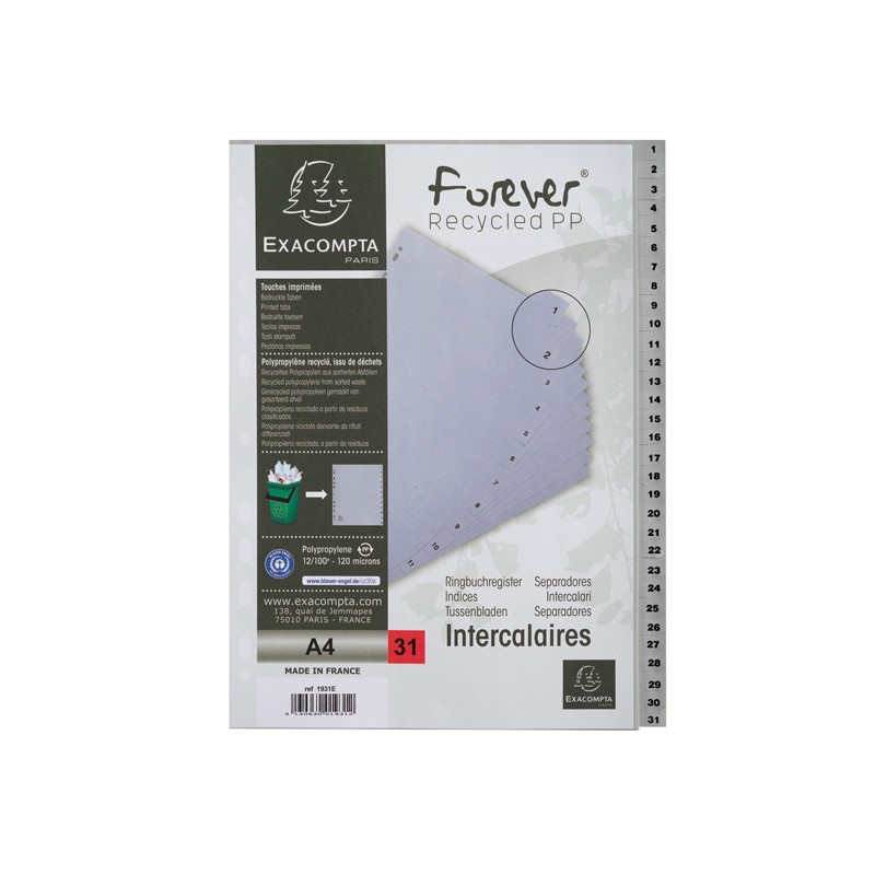 Intercalare numerico - 31 tasti - A4 - PPL riciclato - grigio - Exacompta