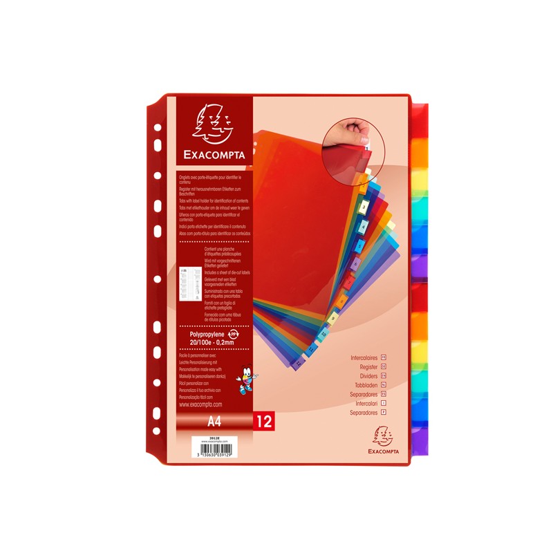 Intercalari neutri - PPL - A4 - trasparente - 12 posizioni - Exacompta
