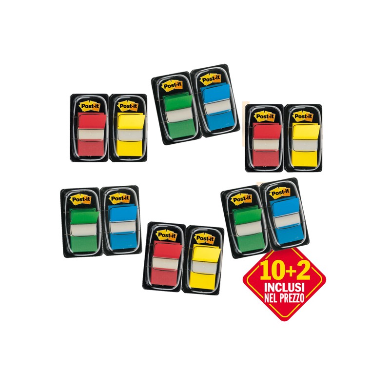 Segnapagina Post-it Index Medium - 680 - 4 colori classici - Post-it - Value pack 10+2 (dispenser da 50 segnapagina ciascuno)