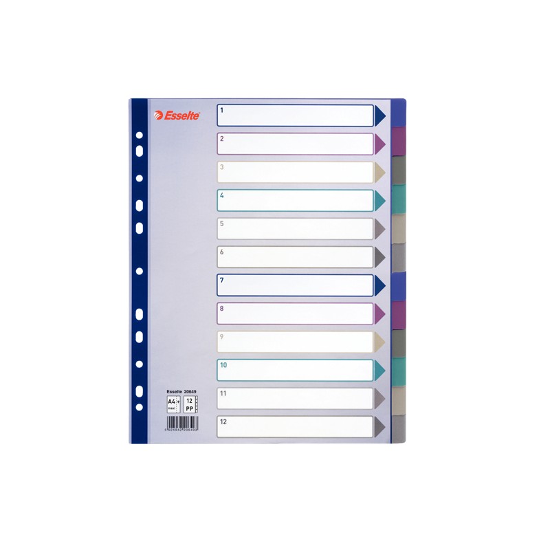 Separatore - 12 tasti - PP traslucido - A4 maxi - 24,5x29,7 cm - multicolore - Esselte