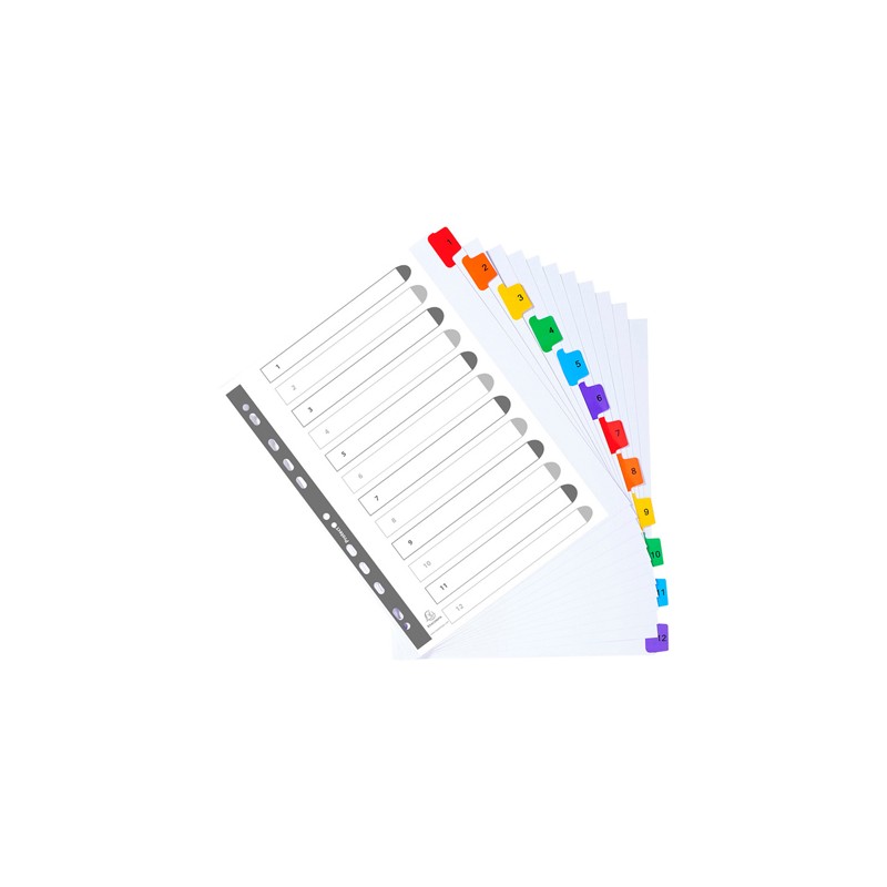 Separatore numerico 1/12 - cartoncino bianco 160 gr - tasti colorati - A4 maxi - Exacompta