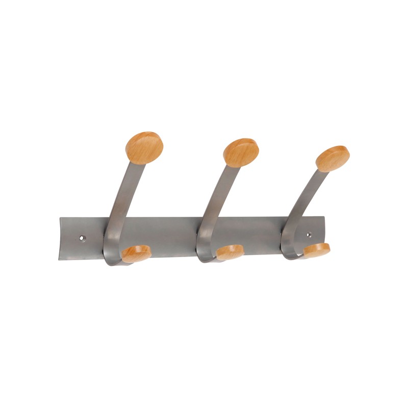 Appendiabiti da muro - 3 posti - 45 x 11,2 x 17,5 cm - metallo/legno - grigio metallo/legno chiaro - Alba