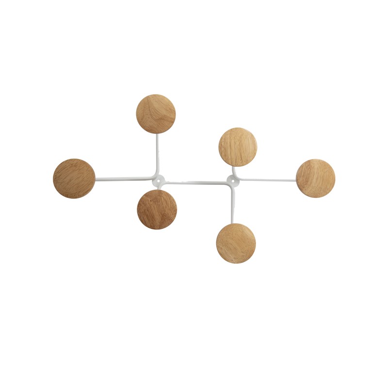 Appendiabiti da muro - 6 posti - 12 x 28 x 7 cm - metallo/legno - bianco - Alba