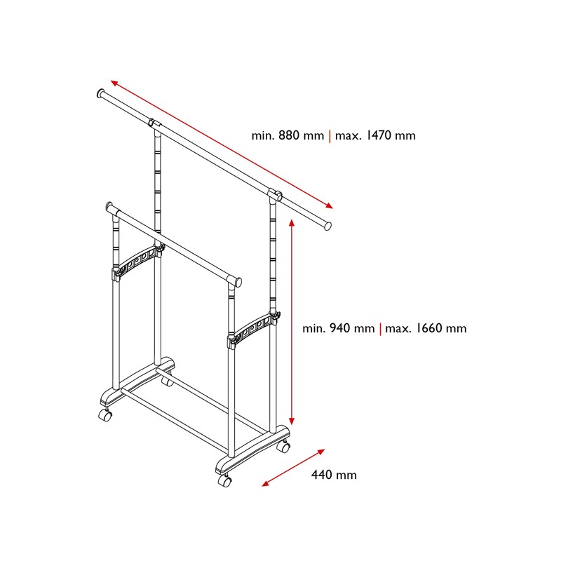 Appendiabiti su ruote Gastone - 2 barre - Perfetto