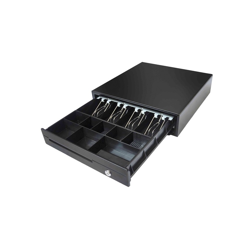 Cassetto portadenaro per banconote e monete, in acciaio laminato a freddo e verniciato con polveri epossidiche. Consigliato quale base di appoggio di registratore di cassa.