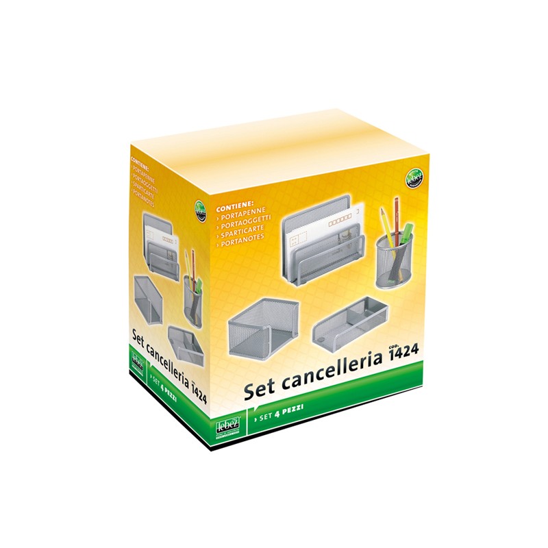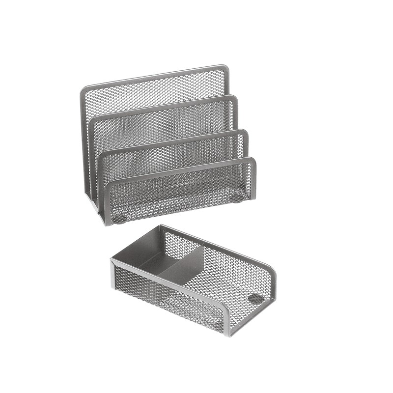 Set scrivania - 4 accessori - rete metallica - argento - Lebez