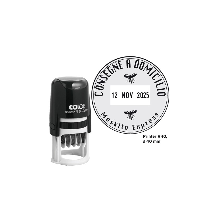 Timbro datario R40 - diametro 40 mm - 6 righe - autoinchiostrante - personalizzabile - Colop