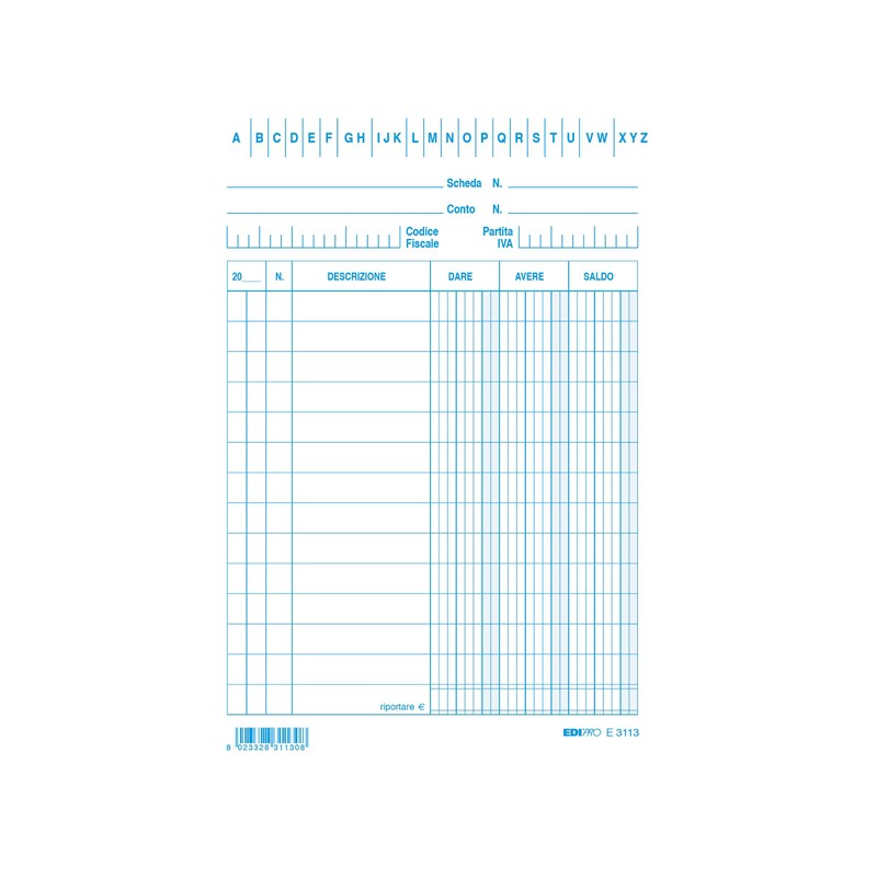 Schede dare/avere/saldo - 15 x 10,5 cm - blu - Edipro - conf. 100 pezzi