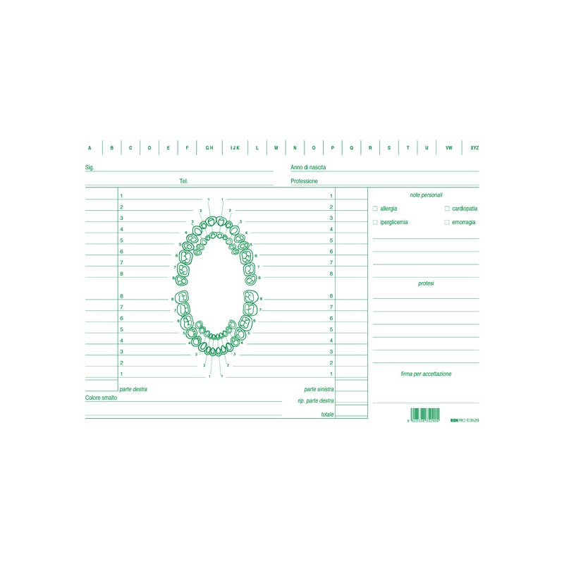 Schede in cartoncino per dentisti - 17 x 24 cm - verde - Edipro - conf. 100 pezzi