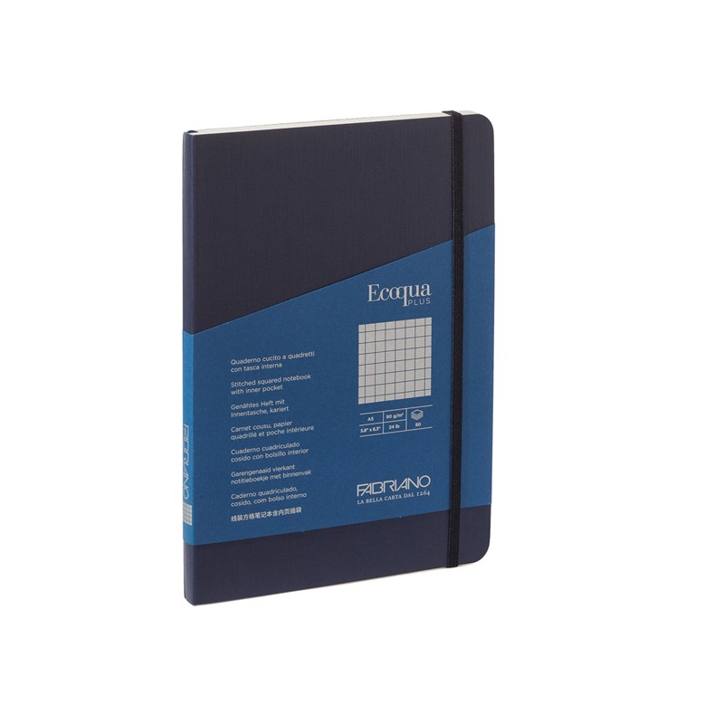 Taccuino Ecoqua Plus - con elastico - rilegatura cucita - A5 - 5 mm - 80 fogli - blu scuro - Fabriano