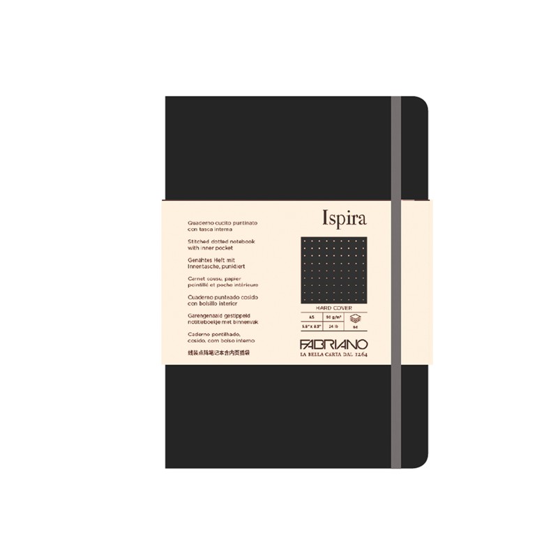 Taccuino Ispira - con elastico - copertina rigida - A5 - 96 fogli - puntinato - nero - Fabriano