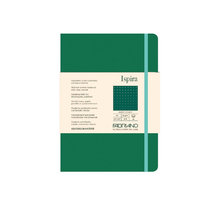 Taccuino Ispira - con elastico - copertina rigida - A5 - 96 fogli - puntinato - verde - Fabriano