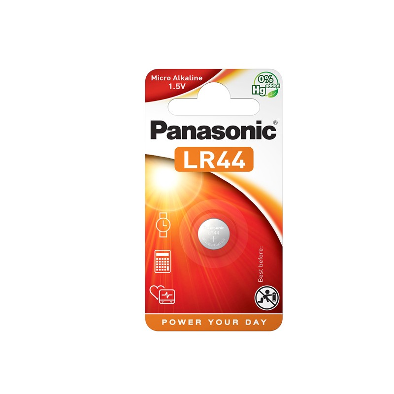 Micropila LR44 - 1,5V - a pastiglia - alcalina - Panasonic - blister 1 pezzo