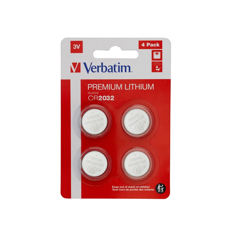 Micropile CR2032 - 3V - a pastiglia - litio - Verbatim - blister 4 pezzi