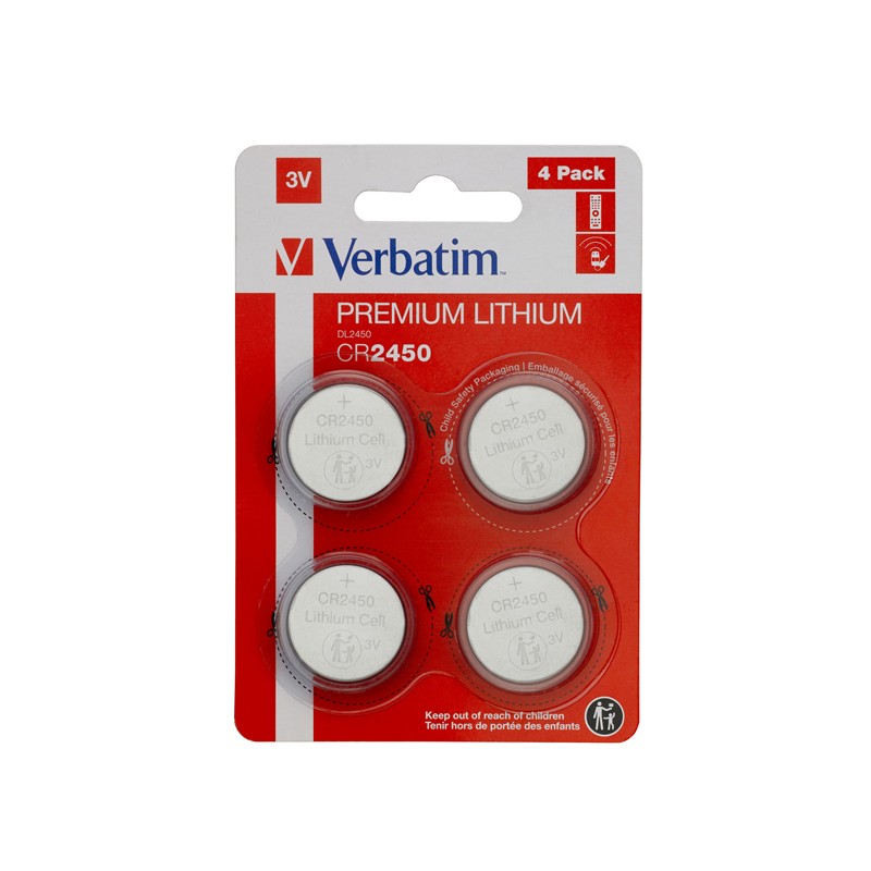 Micropile CR2450 - 3V - a pastiglia - litio - Verbatim - blister 4 pezzi