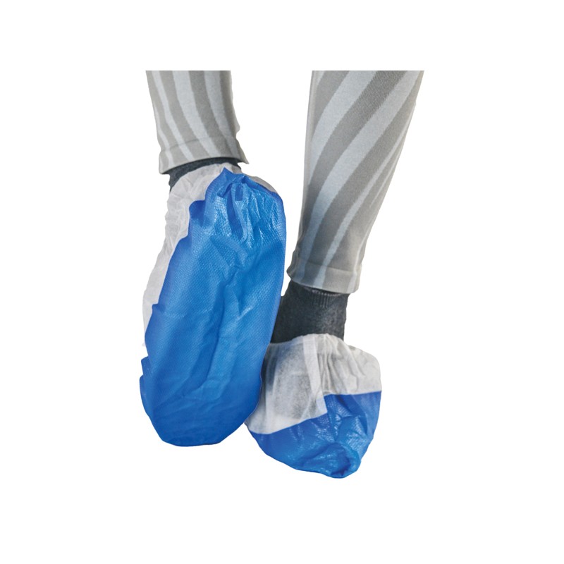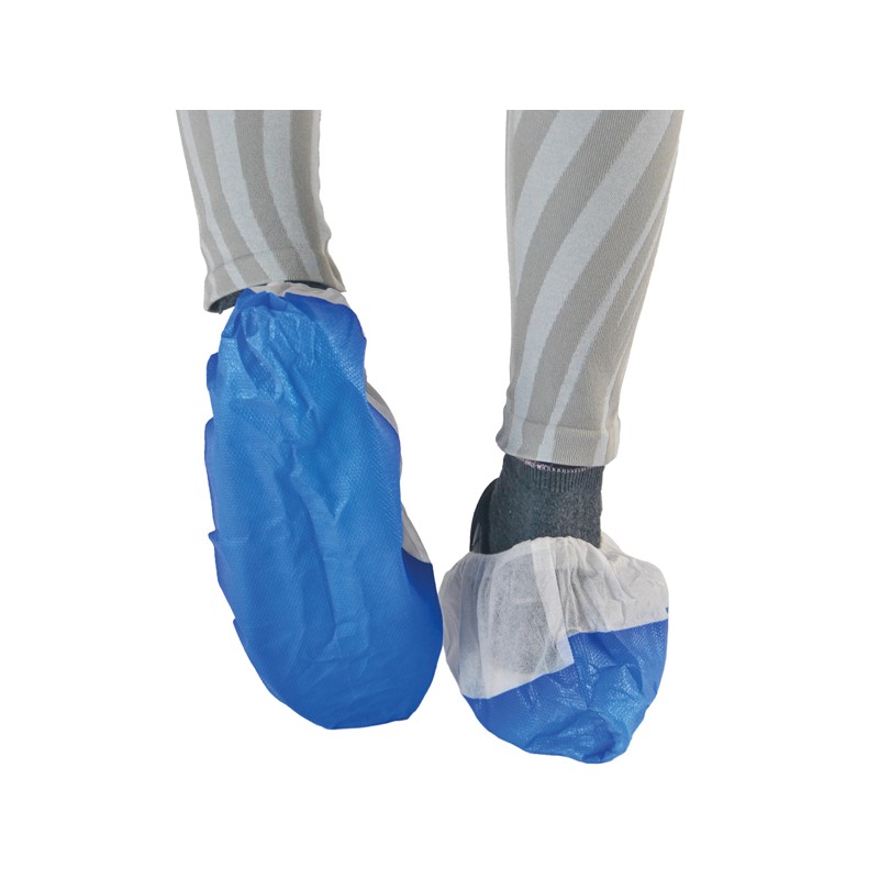Sovrascarpe monouso Dual Barrier - antiscivolo - taglia unica - PLP - bianco/blu - Worker - conf. 50 pezzi