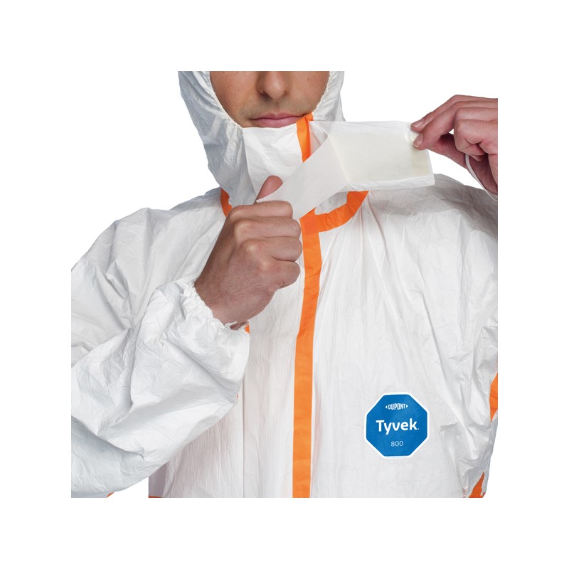 Tuta Tyvek 800J - con nastrature arancioni - taglia M - bianco - Dupont