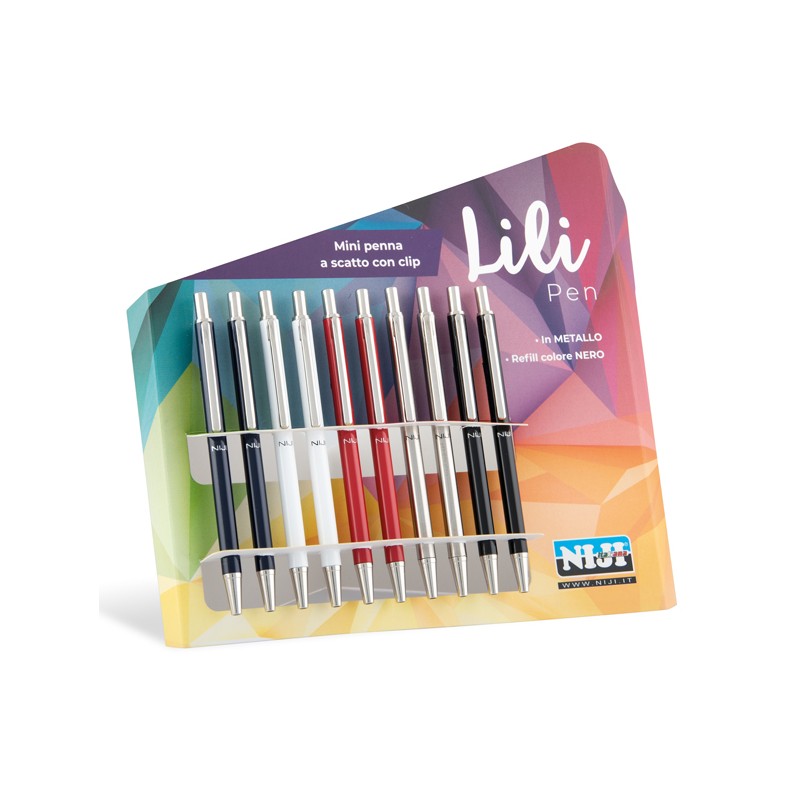 Penna mini a scatto da agenda - colori assortiti - Lebez - conf. 10 pezzi