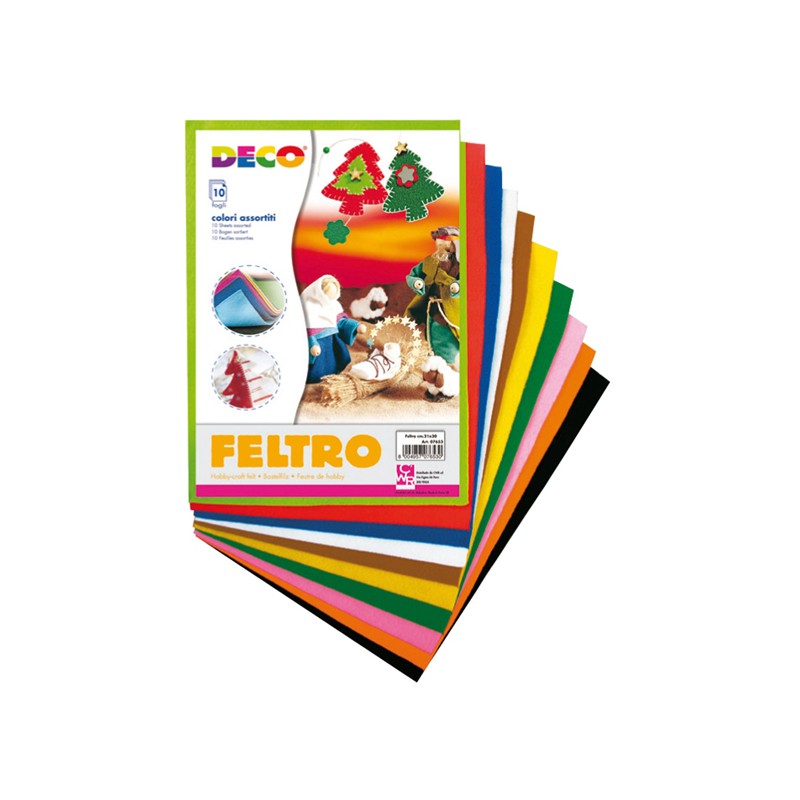 Feltro colorato - 21 x 30 cm - colori assortiti - Deco - conf.10 fogli