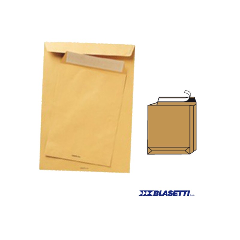 Busta a sacco Monodex - soffietti laterali - fondo quadro - strip adesivo - 25 x 35,3 x 4 cm - 120 gr - avana - Blasetti - conf.