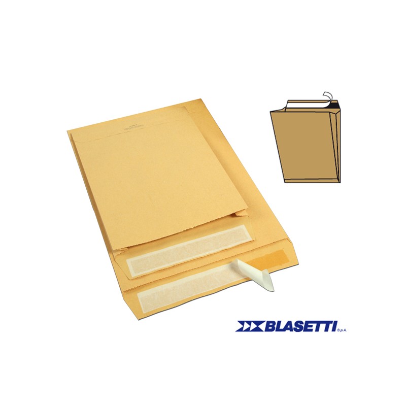 Busta a sacco Monodex - soffietti laterali - strip adesivo - 23 x 33 x 4 cm - 100 gr - avana - Blasetti - conf. 250 pezzi