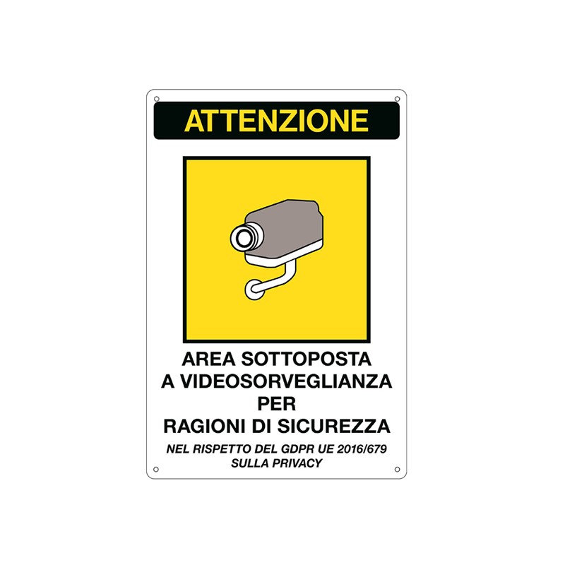 Cartello segnalatore - 20x30 cm - AREA SOTTOPOSTA A VIDEOSORVEGLIANZA - alluminio - Cartelli Segnalatori